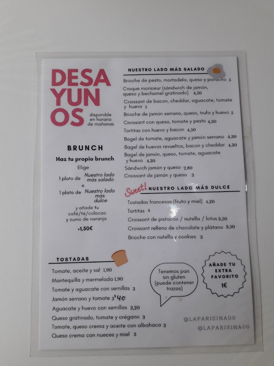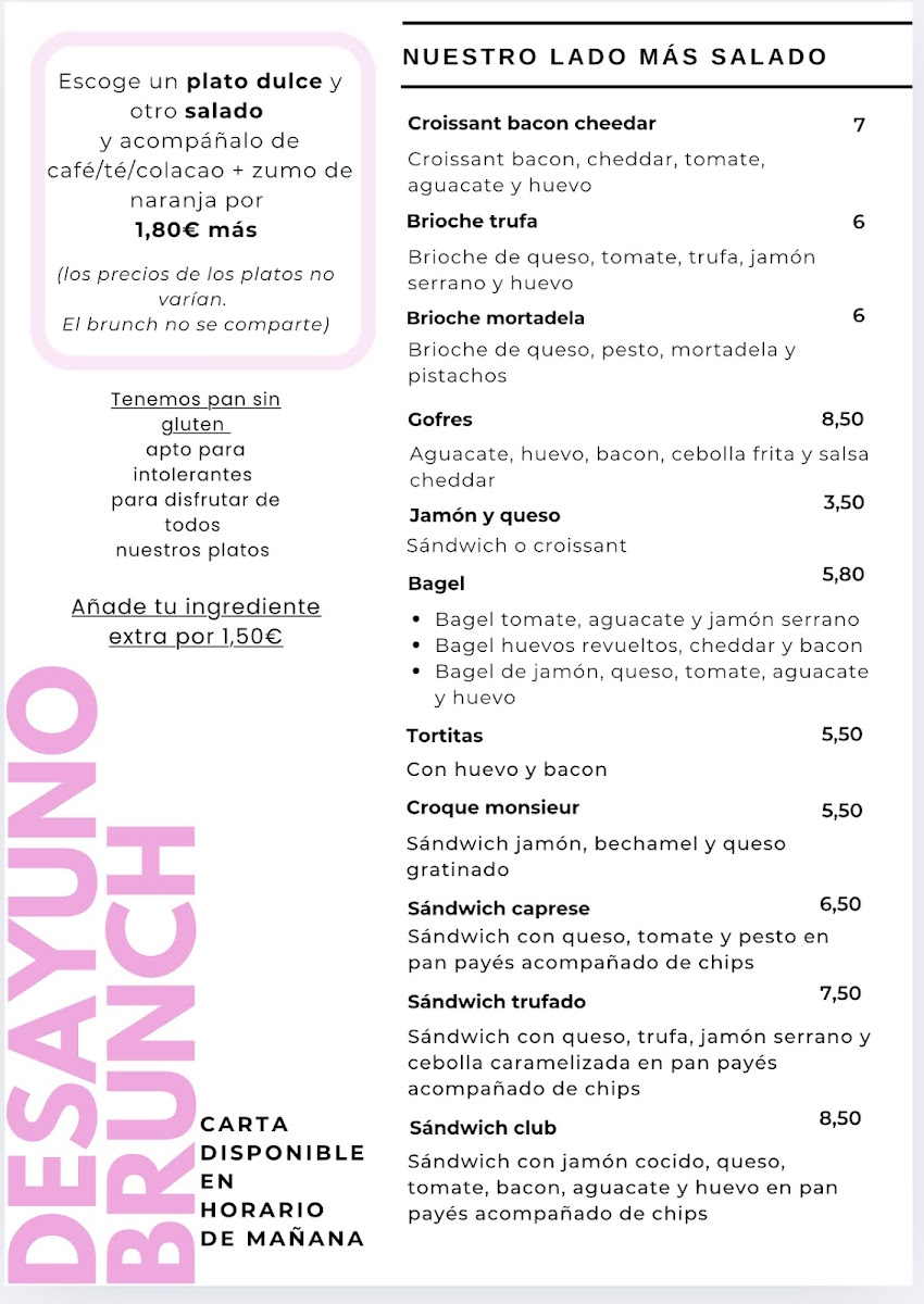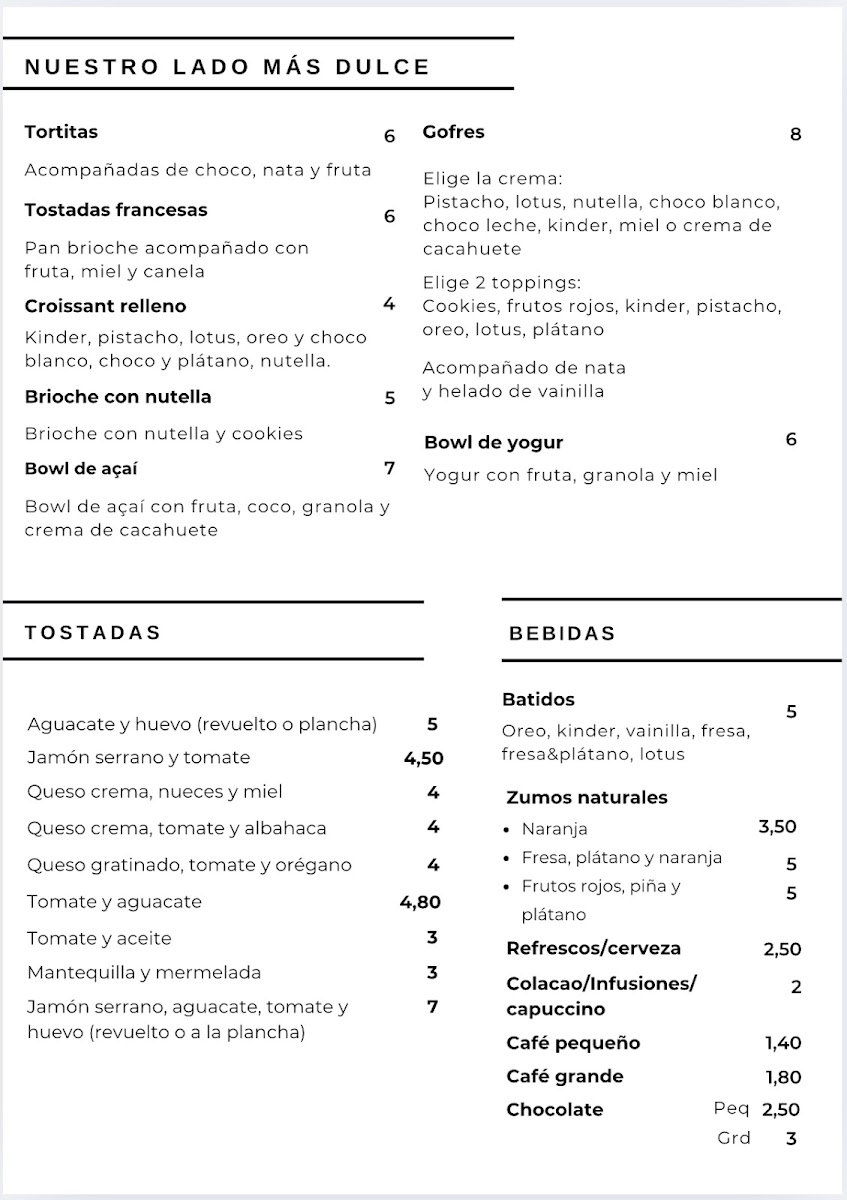 The menu boasts a variety of savory delights, perfect for any palate. Indulge in the Tortitas con Huevo y Bacon for €6.50 or opt for the richly satisfying Sándwich Trufado featuring jamón serrano and truffle, priced at €9.50. For something sweeter, their assortment of pastries, including brownies and croissants, is a must-try.